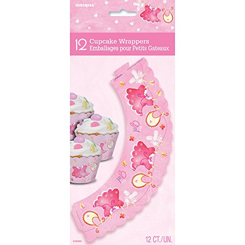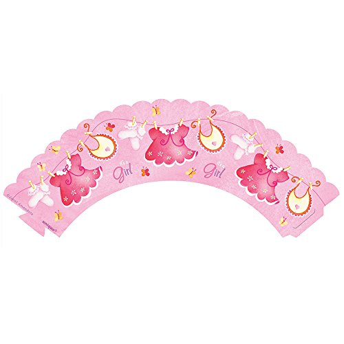 Pink Clothesline Girl Baby Shower Cupcake Wrappers, 12ct