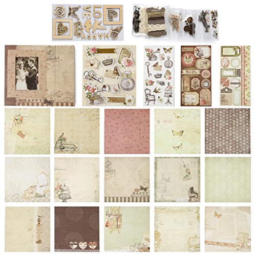 - Kit includes:1x Clamshell album,15xWaterproof pages protceters,15xPatterned papers,1x3Dsticker,3xDie-cut sheets,1xWood Flowerishes,6xEmbellishments.