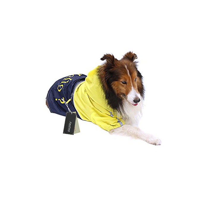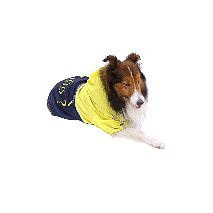 FAKEFACE (Baoxinjp)개 레인 코트 대형견 중형견 우비 애완동물용 복모자 부착 멋장이 도그 레인 코트 레인 판초 도그 웨어 사모에도 허스키 섶나무견 레토리바 대중형 견용레인 칼파
