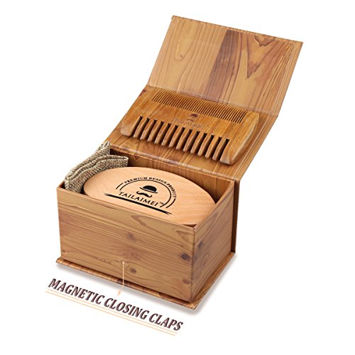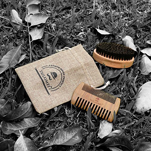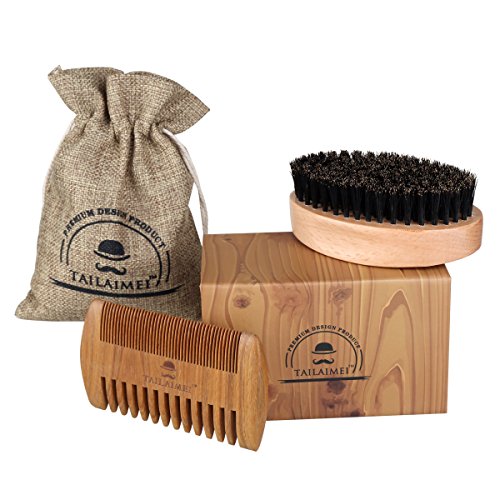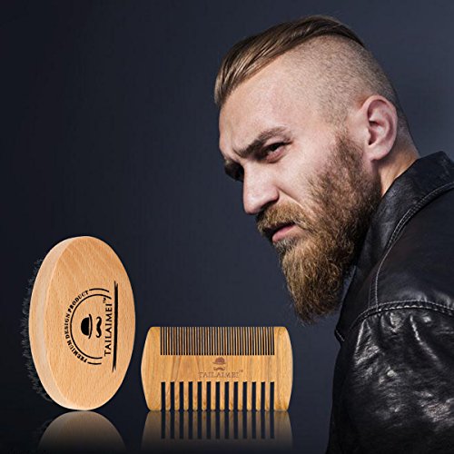 Beard Brush & Beard Comb Kit -TailaiMei 100% Natural Boar Bristle and Handmade Beard Comb Set for Stylish Men- Great for Facial Hair Care and Grooming...