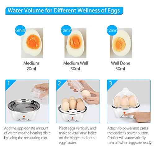 Easy to Use - Just add water with the included measuring cup, put eggs on the egg holder, plug in, and in just a few minutes, have beautifully cooked steam boiled eggs.