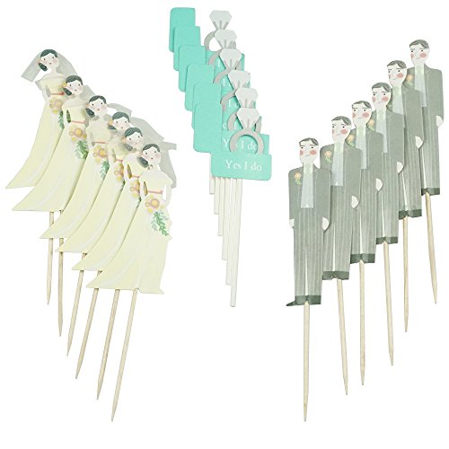 - PACKAGE- The wedding cake toppers set includes 6 diamond ring cupcake toppers, 6 groom cake toppers and 6 bride cake toppers. And the diamond ring cupcake topper is single-sided pattern, bride cake topper and groom cake topper are double-sided patterns.