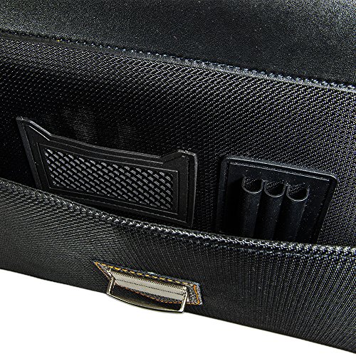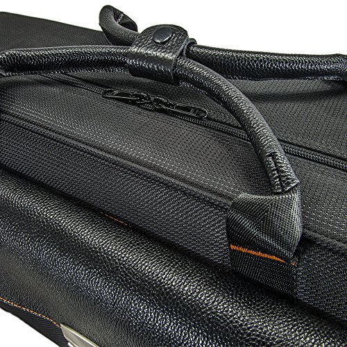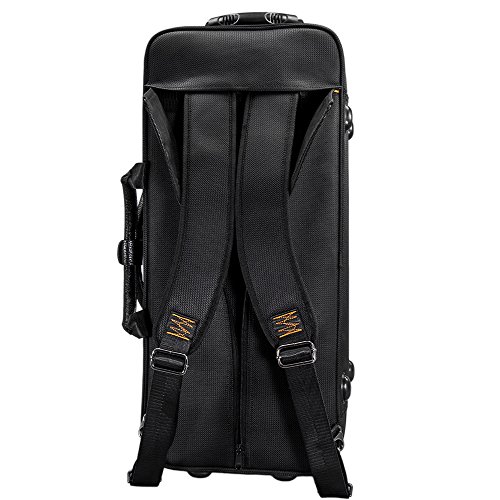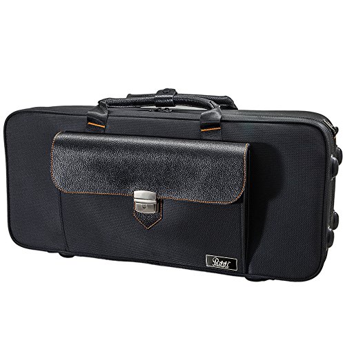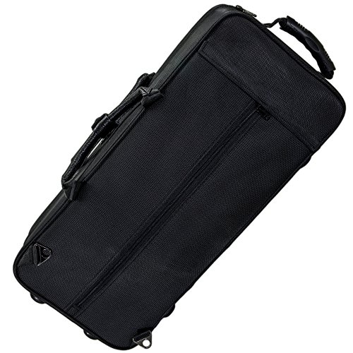 Product Description Brand New Trumpet Saxophone Top Quality Lightweight Case for Eb Alto Saxophones. This case features waterproof canvas with genuine leather exterior with deep, plush velvet lining interior, internal storage compartment, case has highly protective foam padding and a roomy exterior pocket for accessories and sheet music. Two (2) built in leather handles on two (2) sides with shoulder strap included. Padded backpack straps that tuck away into their own pocket when not in use. Classical Black color. 0