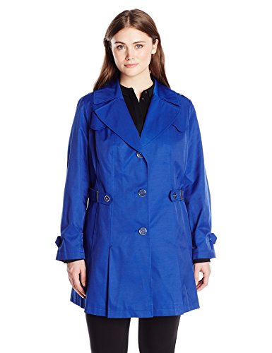 (Via Spiga)/Women/Outerwear/DIRECT FROM USA/Via Spiga Women's Plus-Size Single Breas ted Pleated Trench Coat, Positano Blue, 2X