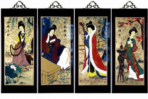 Set Of 4 Oriental Lacquered Painting Wall Art Plaques (Four Beauties) SM