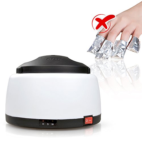 The combination of heat and vapor causes the polish to soften and lift, so it slides off easily, giving you a less drying and harsh experience for your nails and skin.