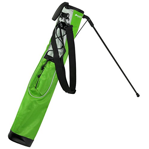 Ideal for a day at the driving range, or a few holes at the executive course. Two compartment top, Ultra lightweight construction, One accessory pocket, Durable carry handle, Detachable shoulder strap, Adjustable elastic lanyard, Strong stand mechanism, Towel ring, glove holders.Feature