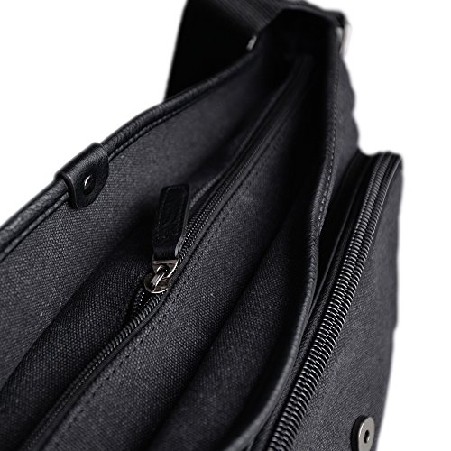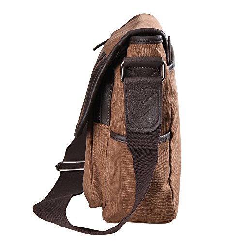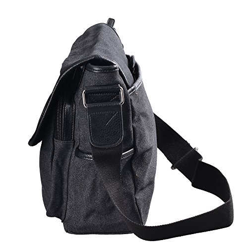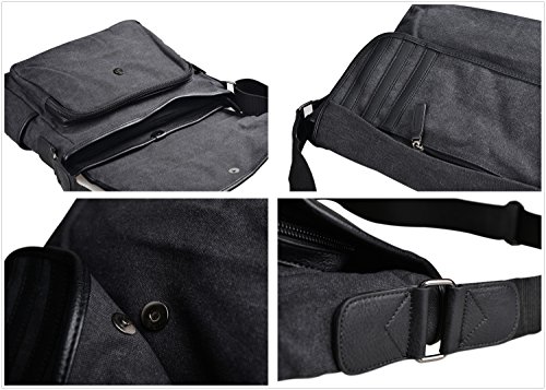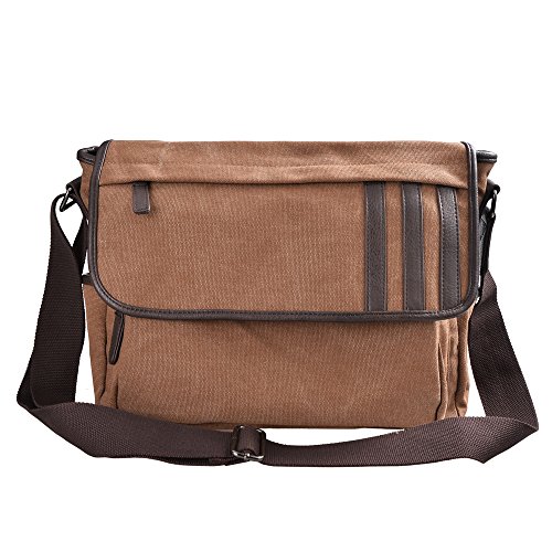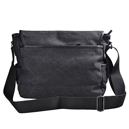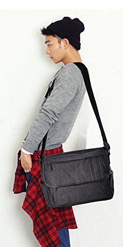 -. Feature : Approx Size : 14.1" L × 4.7 " W × 11" H ,main pocket is large enough to hold 14 " laptop , several clothes , books etc.. / All made of natural long-staple cotton canvas , green and highly rip reistance , high quality man made leather , durable to use for everyday . / Water-washed process for this bag , it is hardly to lose color and looks retro , beautiful and durable . / Total of 9 pockets : a classic shape with several pockets for storage and organization . 1 main compartment with zipper to open , inside has 1 zipper pouch and 2 open pouchs . Outside has 2 front pockets , 1 pocket behind , 2 side pockets . All of your items can be classified in different pockets , avoid rummaging over the whole bag . / Water-Washed process for this messenger bag , it looks retro , more beautiful and hadrdly to lose color . A classic shape , casual and fashion , this messenger bag is for multi purposes and really a great gift for your beloved .