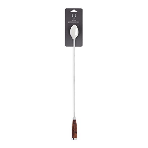 Studio : True Brands Publisher : True Brands Binding : Kitchen Product Description No bar is complete without this essential accessory. With a long handle for easy stirring, our Indian Rosewood Barspoon combines the functionality of a professional-grade bar tool with the textured grain of Sheesham wood, sourced from the verdant forests of India. A modern stainless steel design and completes the ensemble, guaranteeing the perfect sip every time. 0