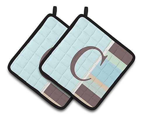 Caroline's Treasures Letter C Initial Monogram - Blue Stripes Pair of Pot Holders CJ1003-CPTHD, 7.5HX7.5W, Multicolor