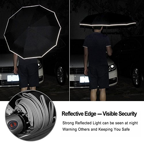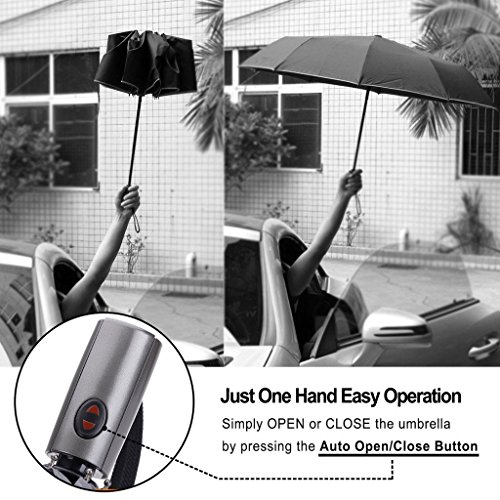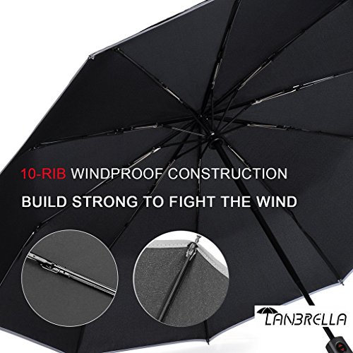 -. Feature : WINDPROOF VENTED DOUBLE CANOPY: LANBRELLA folding golf umbrella has a vented DOUBLE CANOPY construction which allows the wind to pass through the vents, making the umbrella much easier to handle in harsh conditions without getting flipped or inverted easily in the wind. / STURDY AND DURABLE FOLDING UMBRELLA: The material of fiber glass ribs are carefully chosen to make sure the umbrellas are sturdy and durable. Each ribs are upgraded with high-density flexible fiberglass ligaments to prevent breakage or rib distortion in strong winds. / COMPACT, PORTABLE AND EASY CARRYING: Design for compact, light weight and more easy carry. This travel umbrella is easy to store in your car, your briefcases, backpacks, tavel bags etc. It is perfect for travel, business, camping, fishing, and daily use. Suitable for men and ladies. / CONVENIENT AUTO OPEN CLOSE IN ONE SECOND: Just push the button once to automatically open and press again to instantly fold the canopy closed. You do not need to wait another second to open the umbrella when you get out of your car in the rain, especially in heavy rainfall, even when your hands are full of things. / LIFETIME WARRANTY: 100-Day Riskless Money Back Warranty to make sure we provide a good service. If you don't like it, you can just return it. After we receive it, you will get fully refund.