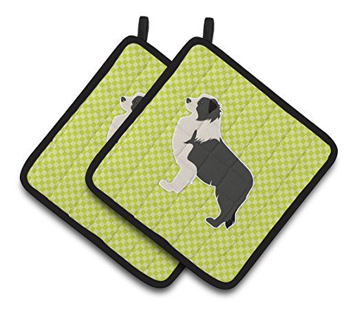 Caroline's Treasures black Border Collie Checkerboard green Pair of Pot Holders BB3823PTHD, 7.5HX7.5W, Multicolor