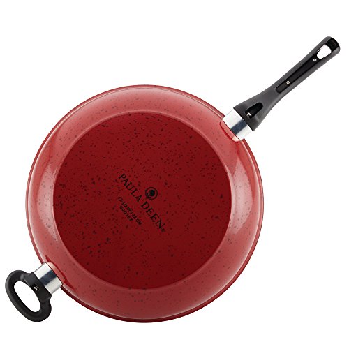 Skillet cooking gets a boost of convenience and capacity with the dishwasher-safe Paula Deen(r) River bend Aluminum Nonstick 12-1/2-Inch Deep Skillet with Helper Handle. This two-handled frying pan from Paula Deen(r) is ideal for making Southern-style weekend breakfasts, perfect for lunchtime fricassees and large enough for a weeknight skillet dinner. The dishwasher-safe aluminum construction heats quickly and evenly for better cooking control whatever the recipe. And the interior features long-lasting, top-quality nonstick, so foods release in a jiffy and cleanup is a cinch. Stain-resistant speckled porcelain exterior color inspired by classic enamelware and a charming stovetop silhouette add a warm, cozy touch to the kitchen. Take advantage of the generous size of this Paula Deen(r) deep skillet to make other dishes like sautéed vegetables, egg fried rice or a brunch frittata. Suitable for all stovetops except induction, the pan is conveniently oven safe to 350, making it easy to tackle Paula's delicious stove-to-oven recipes. Best of all, durable, stylish Paula Deen(r) River bend Cookware makes meal making easier and conveniently leaves cleanup to the dishwasher. Get into those deep, delicious flavors when cooking your best, delicious dishes with the colorful, charming dishwasher-safe Paula Deen(r) River bend Aluminum Nonstick 12-1/2-Inch Deep Skillet with Helper Handle.Feature