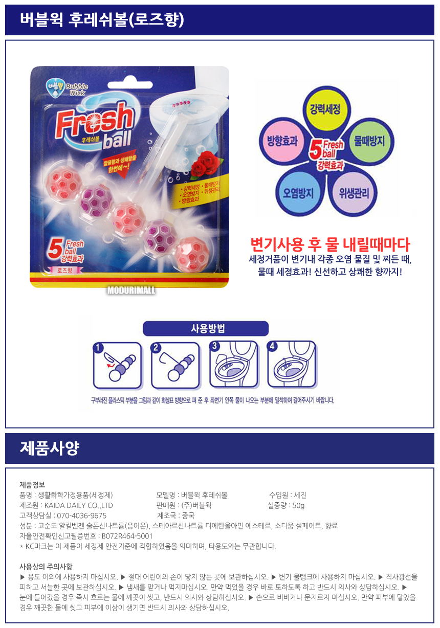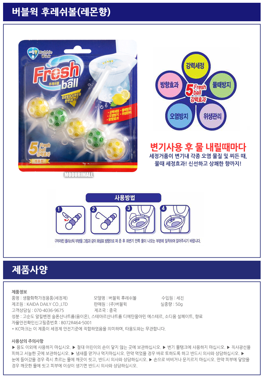 <버블윅 향이 정말 좋은 후레쉬볼 5개 변기세정제>