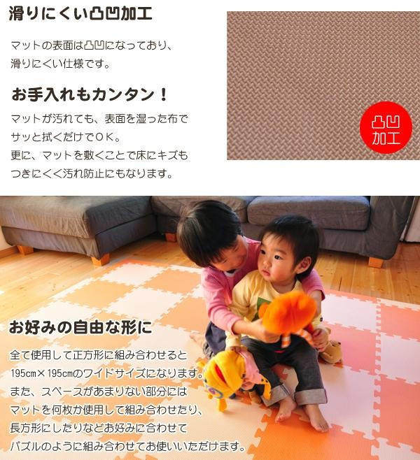 インテリアにもしっくり馴染むシンプルな色使いのフロアーマットです。場所に合わせて自由に組み合せが可能。しっかりとした厚みで衝撃を吸収しやすく、床の傷防止や防音にも役立ちます。また、ハイハイ時のお子様のひざの保護などに役立ちます。 |