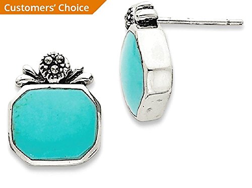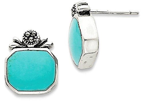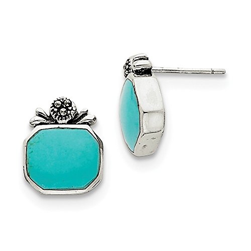 ICECARATS DESIGNER JEWELRY 925 STERLING SILVER BLUE TURQUOISE POST STUD EARRINGS