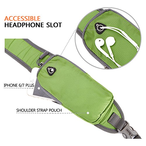 HIGHLIGHT DETAILS: The side pocket with adjustable buckle keeps the water bottle from falling out. The cell phone pocket can hold today's cell phone, such as iPhone 6/7 Plus, or walkie talkies, which is a lot easier to hear the cell phone ring than if it was inside the bag itself. Headphone can be put into the slot on phone pocket, which is convenient to access music on the phone.