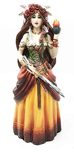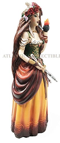Studio : Gifts Decors Publisher : Gifts Decors Binding : Kitchen Product Description In Celtic polytheism and Irish mythology, Brigit, Brigid or Brighid (exalted one[1]) is the daughter of the Dagda and one of the Tuatha De Danann. She was the wife of Bres of the Fomorians, with whom she had a son, Ruadan. As is often the case with Celtic deities who are described as threefold, she is seen as three sisters, all named Brigid, who perform various functions in society, such as healing, poetry and smithcraft.In the Middle Ages, the goddess Brigid was syncretized with the Christian saint of the same name. According to medievalist Pamela Berger, Christian "monks took the ancient figure of the mother goddess and grafted her name and functions onto her Christian counterpart," St. Brigid of Kildare.[9] St. Brigid is associated with perpetual, sacred flames, such as the one maintained by 19 nuns at her sanctuary in Kildare, Ireland. The sacred flame at Kildare was said by Giraldus Cambrensis and other chroniclers to have been surrounded by a hedge, which no man could cross. Men who attempted to cross the hedge were said to have been cursed to go insane, die or be crippled. 0