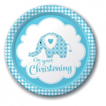 Sweet Baby Elephant Christening Plates - Blue - Pack of 8