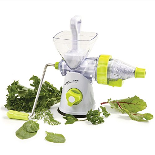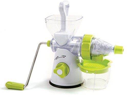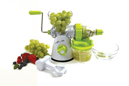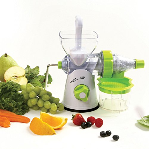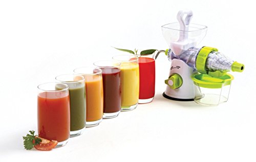 -. Brand : Electric California -. Color : White -. EAN : 0719936525487 -. Feature : Measures assembled: 14 / Capacity: 1.5C juice catcher cup / Separate the juice from the pulp of your favorite fruits and vegetables to create your own fresh juice with no heat to interfere with nutrients / Easy to assemble, use and then disassemble to clean / Secure suction base locks down with key combined in plunger/press. Recipes and instructions included. -. Label : Electric Juicers -. Manufacturer : Electric Juicers -. ProductGroup : Kitchen -. ProductTypeName : KITCHEN -. Publisher : Electric Juicers -. Studio : Electric Juicers -. Title : Manual Juicer Make Fresh Juice From Your Favorite Fruits Vegetables -. UPC : 719936525487