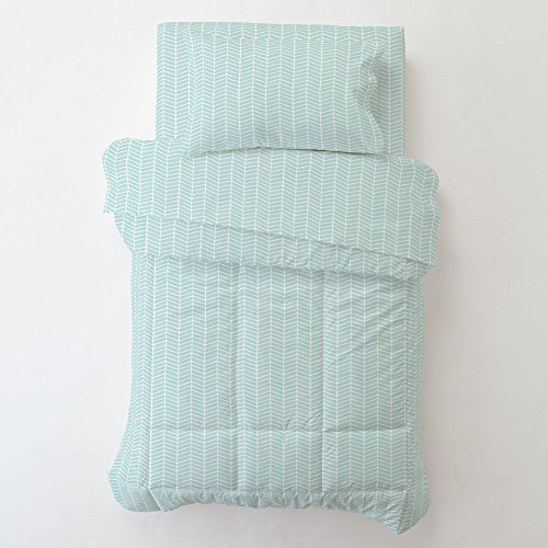 Studio : Carousel Designs Publisher : Carousel Designs Binding : Baby Product Product Description Fitted bottom sheet in Mist Herringbone. Our fitted toddler sheets feature deep pockets to hug mattresses securely. Fits toddler beds using standard crib mattresses measuring approximately 28" x 52". 0