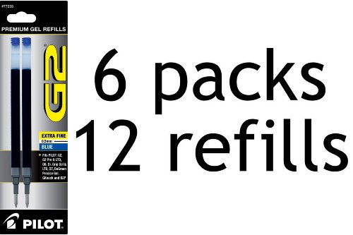 Value Pack of 6 - Pilot G2 Gel Ink Refill, 2-Pack for Rolling Ball Pens, Extra Fine Point, Blue Ink (77233)