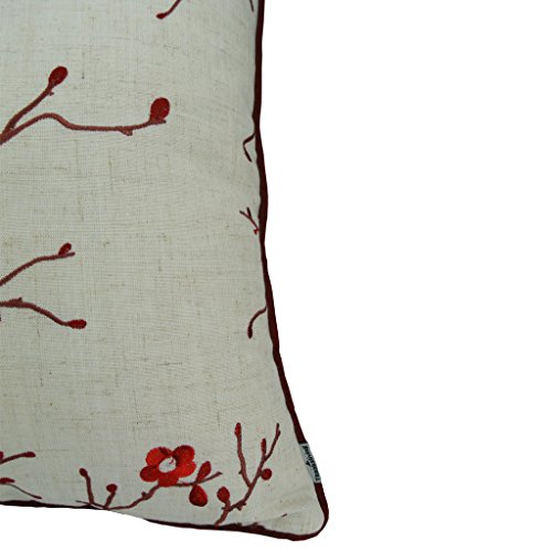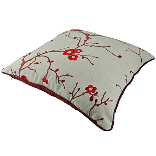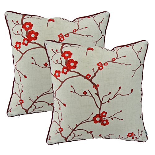 Thanksliving Decorative Embroidery Pillowcase Cushion Covers 18 x 18 Inches (Set of 2),Red Plum Blossom