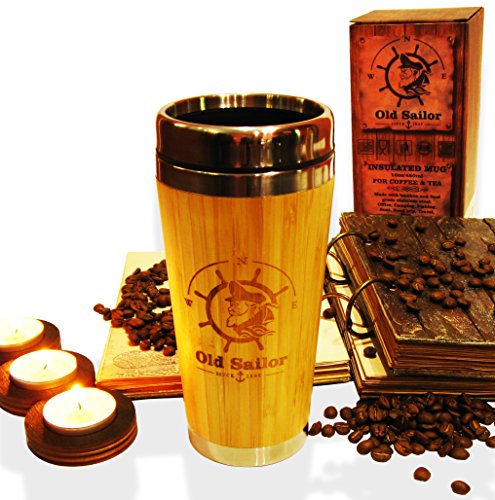 Enjoy your early morning, afternoon or night coffee and tea beverage in elegant OLD SAILOR insulated coffee tumbler. A stylish way to keep that favorite drink at the right temperature. Meets your necessities - Your beverage will not soften, and keep its great taste and temperature. Very good temperature retention. It is not vacuum insulated mug, but double-wall food grade stainless steel and nature bamboo now keeps liquids hot for up to 2 hours or cold for up to 4 hours.