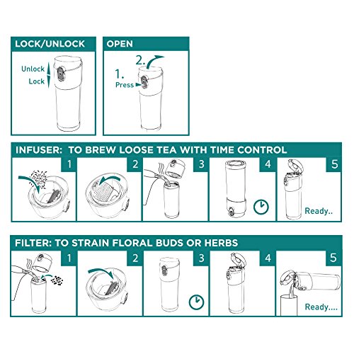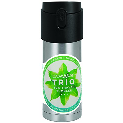 Casaware Trio Tea Infuser - Filter - Travel Tumbler with 2-way Leaf Compartment 12 Ounce (Stainless)