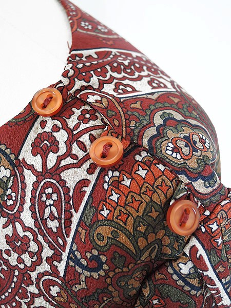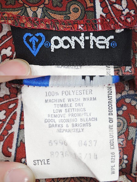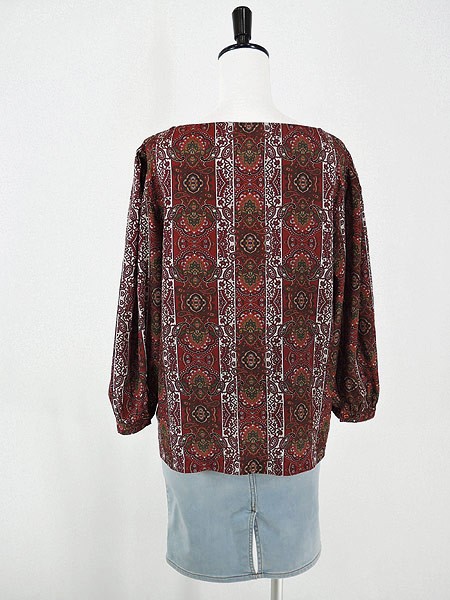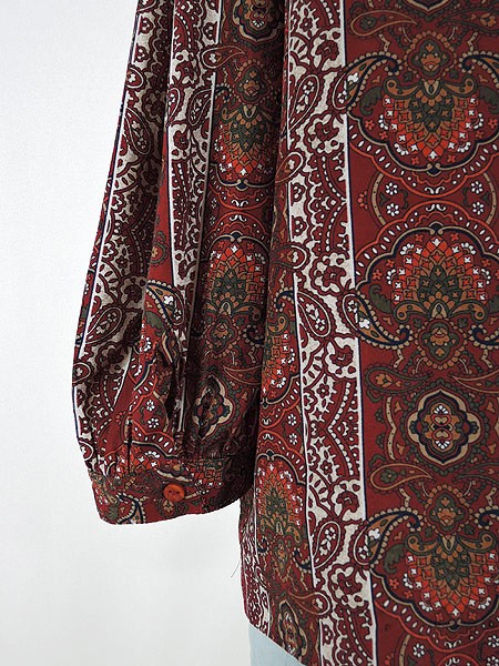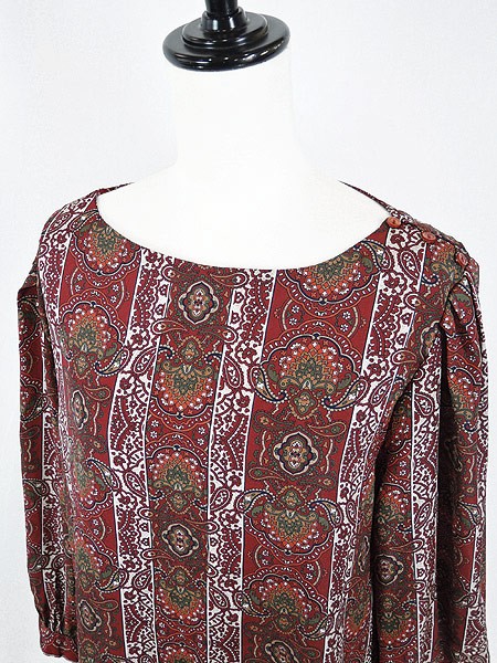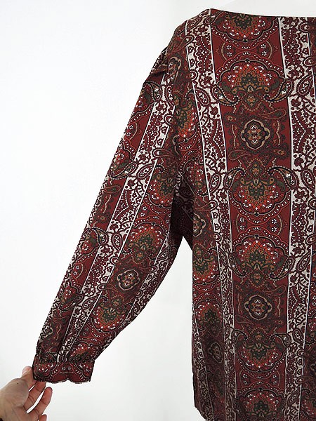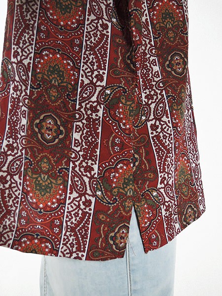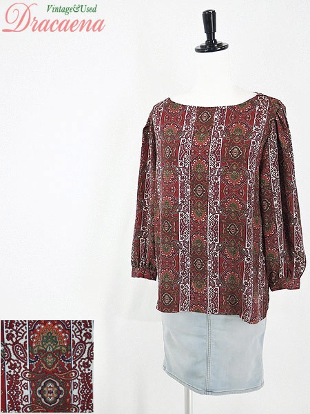 Ladies ブランド- カラーえんじ色ベース メール便不可 コンディション★★★ 素材ポリエステル 表記サイズ- 実寸サイズ 着丈 61 cm 身幅 54 cm 肩幅 40 cm 袖丈 50 cm ※ウエスト・ヒップ以外は平置き採寸