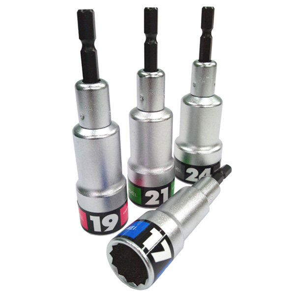 ●ビットが折れてもソケットが落下しない14.4V対応、軸付電動・充電インパクト用ソケット