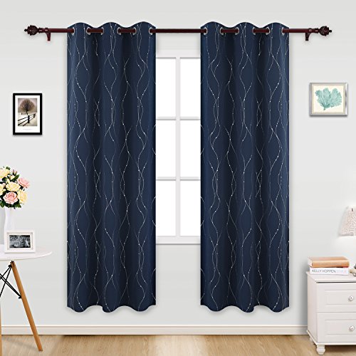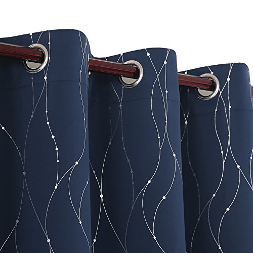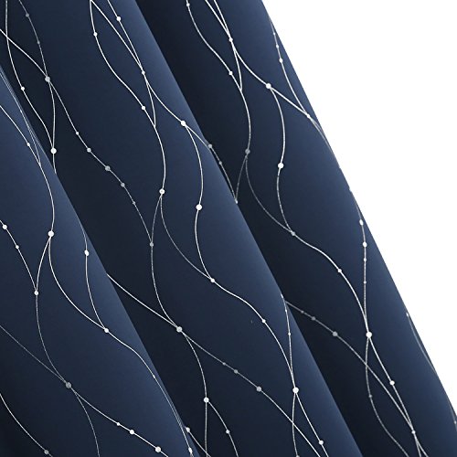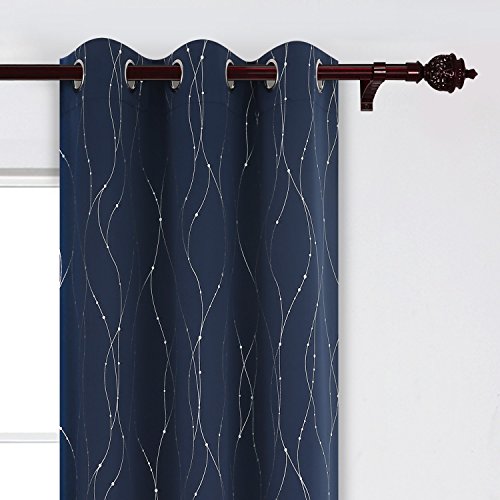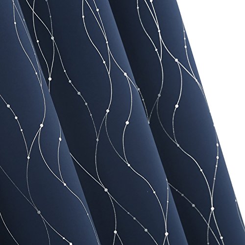 Deconovo Blackout Curtains Wave Line with Dots Foiled Printed Curtain Deconovo Wave Line with Dots Foil Printed Blackout Curtains, brings a comfortable and lively atmosphere in your home. Neutral background color bring fabric an incredible beauty. These curatins are stylish and have a unique design. Made of 100% polyester, they are silky, soft, drapery and very pleasant to touch when compared to the other curtains. All seams are nice and straight, no loose threads. Floral patterns also have no visual defects. Overall, it makes the curtain hang nicely and gives an expensive look. They are durable, the fabric is not at all flimsy, and they are made to last for a long time! They are super easy to hang. Features - This printed blackout curtain is perfect for : Late sleepers, Shift workers, Seniors, Infants parents, Students, Computer operators, projectors and many more. They ensure that even if you are a light sleeper you will not be disturbed by the sound on the streets.