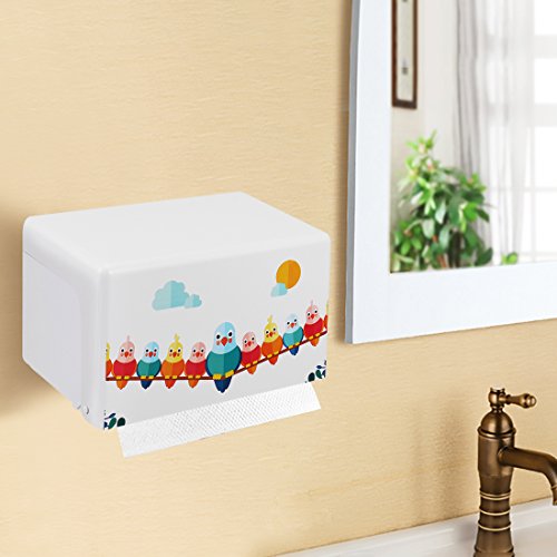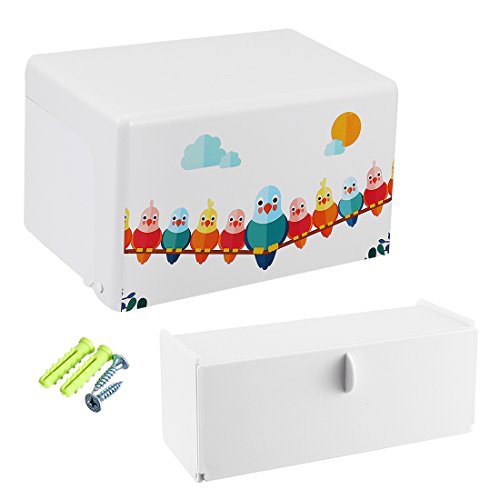 uxcell White Plastic Bird Image Mount Paper Holder, Flip-up Tissue Box 2 in 1 Set