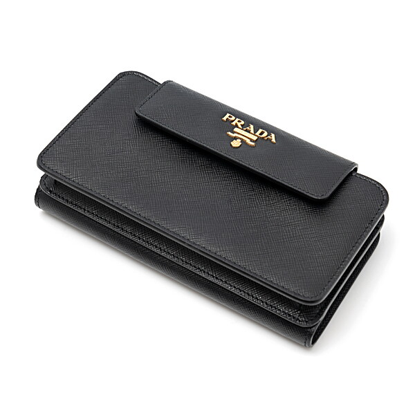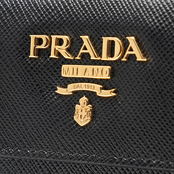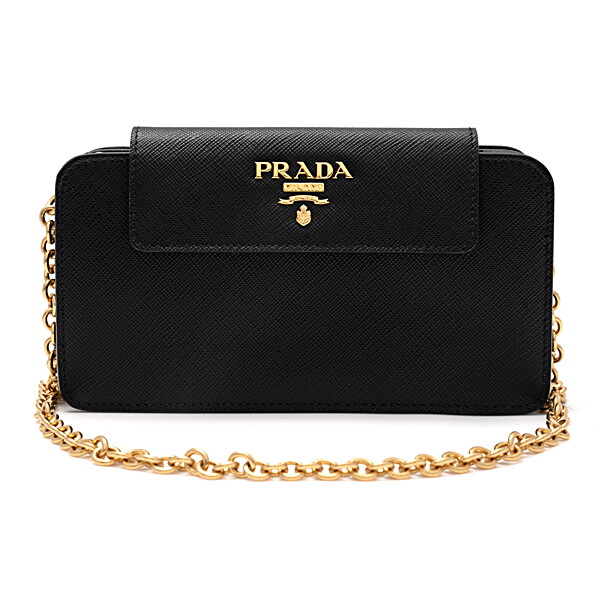 고급스러운 블랙 컬러에 프라다 골드 메탈 로고가 포인트가 되어