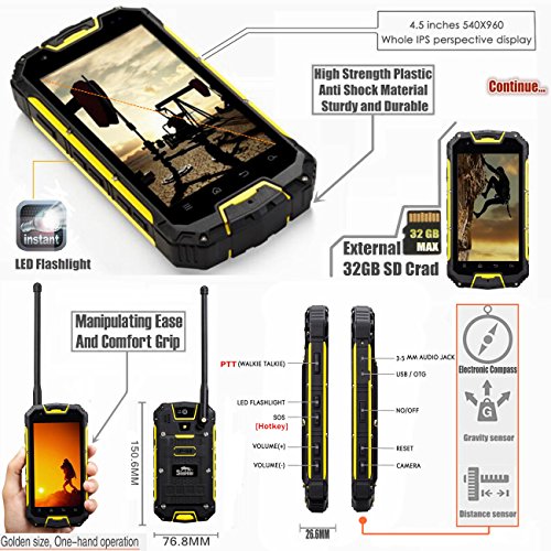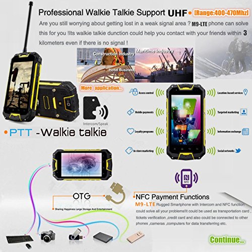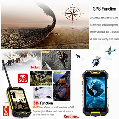 -. Title : Snopow M9 Lte Ip68 Waterproof Dustproof Shockproof Red Outdoor Hiking 4g 3g 2g Unlocked Cell Phone Dual Sim Quad Core Android 5.1/ptt Walkie Talkie NFC OTG LED Torch Gps 4.5 Inch Smartphone(yellow)