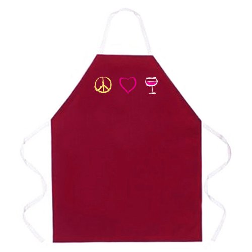 Attitude Aprons Fully Adjustable Peace Love Wine Apron, Burgundy