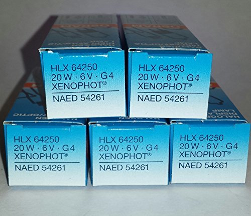 5 Pack: Osram Sylvania FHE / ESB 64250 HLX 6V 20W G4 Bipin Halogen Light Bulb
