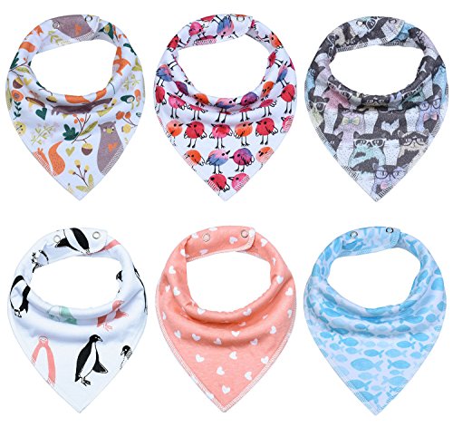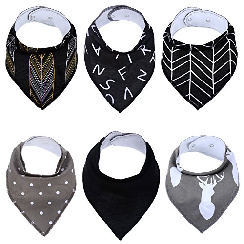 -. Feature : SUPER ABSORBENT DROOL BIBS - With double layer design - Our stylish baby bandana drool bibs are 100% soft organic cotton on the front and 100% soft polyester fleece on the back for added absorbency. Teething babies drool A LOT and our baby bibs keep clothes dry. No more drool rings on your baby's clothes. / BABY REGISTRY GIFT SET - Our 6 pack of cute baby bibs makes for a thoughtful baby shower gift and a practical and stylish baby registry item. / EASY TO USE ADJUSTABLE SNAPS BUTTONS - Comfortable Baby Bandana Bibs have 2 nickel-free snaps that adjust to your growing baby. Our baby bandanas are recommended from babies aging from 2 to 24 months. / UNIQUE & FASHIONABLE ACCESSORY - Each bandana bib is professionally designed to be versatile enough for any outfit. Our drool bibs are a practical and trendy solution to drooling/teething babies. Let our bandana baby bibs absorb your baby's drool in style. / 100% CUSTOMER SATISFACTION GUARANTEED - Offering the very best for your baby is the most important thing in the world, right? We are confident that we can do exactly the same for you. Our product is backed with a 100% Money Back Guarantee. If you are unsatisfied in any way with this product, we will refund your money with no questions asked.