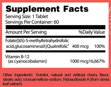-. Feature : HIGHEST QUALITY B12 Vitamin / DELICIOUS CHEWABLE with wild cherry flavor / VERY POPULAR energy boosting supplement / B12 IS ESSENTIAL for healthy skin, nails, and hair / SUPPORTS metabolism, nerve function, red blood cell formation, energy production, brain function