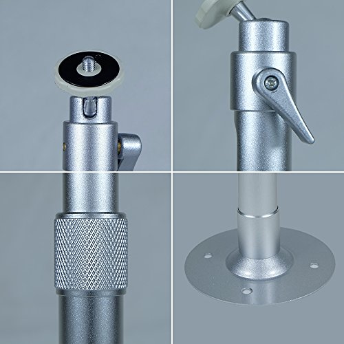 Specifications: Material: aluminium alloy Length: adjustable from 30cm-50cm Base Diameter: 160mm Safety Load: 5KG Rotate Angle: 360degrees Wide Application: mini projector, LCD or DLP projectors, and digital camera, camcorder or 35mm SLR, etc Package Content: 1 x Projector Mount (Screws are included)