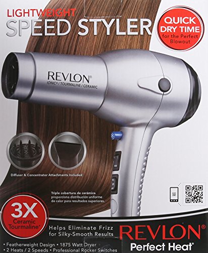 Studio : Revlon ReleaseDate : 2006-05-17 Publisher : Revlon Platform : Windows Binding : Health and Beauty Product Description Revlon 1875 Watt Tourmaline Ionic Lightweight Dryer feature Tourmaline Ionic Technology for ultimate shine, volume, and healthier looking styles. This dryer features an ion indicator light, separate heat and speed rocker switches, 2 heat/2 speed settings, cold shot button, hinged endcap, anti-skid bumpers, and concentrator and finger diffuser attachments. This ultra lightweight design is 25% lighter than your average dryer and has a sleek and upscale spray finish. This unit is super quiet and fast drying. 0