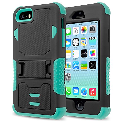 iPhone 5 Case, RANZ (Mint/Black) Rugged Impact Armor Hybrid Heavy Duty with Kickstand Cover For Apple iPhone 5 / 5s