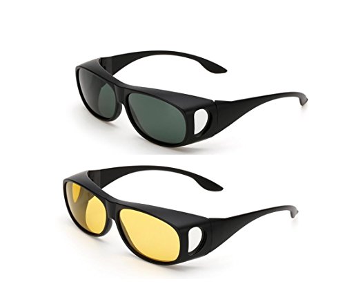 Product Description Day black sunglass or Green Sunglasses Polarized lenses for crystal clear vision and maximum sun protection The glasses not only filter harmful UV rays, but polarize the light and thus reduce annoying reflections. You will also be astonished: with these eyewear you can even see through the reflections of the sky and clouds on water surfaces or car and window panes. The attachment is simply placed on the eyeglass frame and can be folded up easily if necessary. The perfect and cost effective solution for all wearers of glasses polarized lenses, UV protection Glare-free light brightness and sharper contrasts Night vision Yellow sunglasses High contrast enhancement for absolutely sharp vision in difficult light Are you feeling well so that you can see everything at night rather blurry? Or turn off the headlights and street lamps? With these glasses you have in the future even at night the full view. Thanks distinct contrast enhancement you see everything much clearer way, also a treat for your eyes at twilight, fog, snow or heavy rain. This technique has been used successfully for many years of ski-athletes or sniper. At night you are now less blinded by bright light sources such as oncoming cars. Ideal even for eyeglass wearers: you can leave on your visual aid and support the Night Vision comfortable about it.
