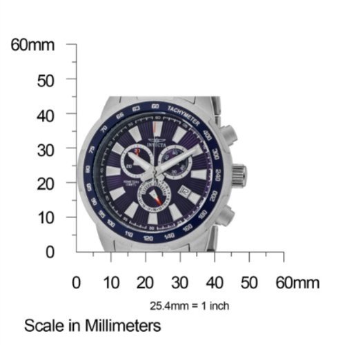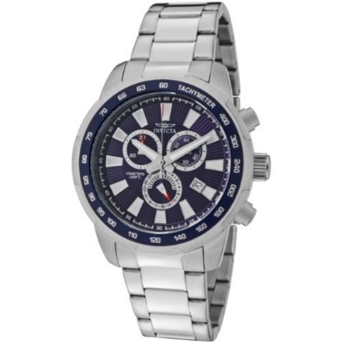 -. Binding : Watch -. Brand : Invicta -. Color : blue -. Department : mens -. EAN : 0843836015561 -. Feature : Swiss quartz movement / Flame-fusion crystal; brushed and polished stainless steel case and bracelet / Chronograph functions with 60 second, 30 minute and date subdials; date window / Blue textured dial with silver tone hands and hour markers; luminous; tachymeter scale on stainless steel bezel with blue ring / Water resistant to 330 feet (100 M): suitable for snorkeling, as well as swimming, but not diving -. Label : Invicta -. Manufacturer : Invicta -. Model : 1556 -. MPN : 1556 -. PackageQuantity : 1 -. PartNumber : 1556 -. ProductGroup : Watch -. ProductTypeName : WATCH -. Publisher : Invicta -. ReleaseDate : 2012-01-13 -. Studio : Invicta -. Title : Invicta Men's 1556 Specialty Chronograph Blue Dial Stainless Steel Watch -. UPC : 843836015561