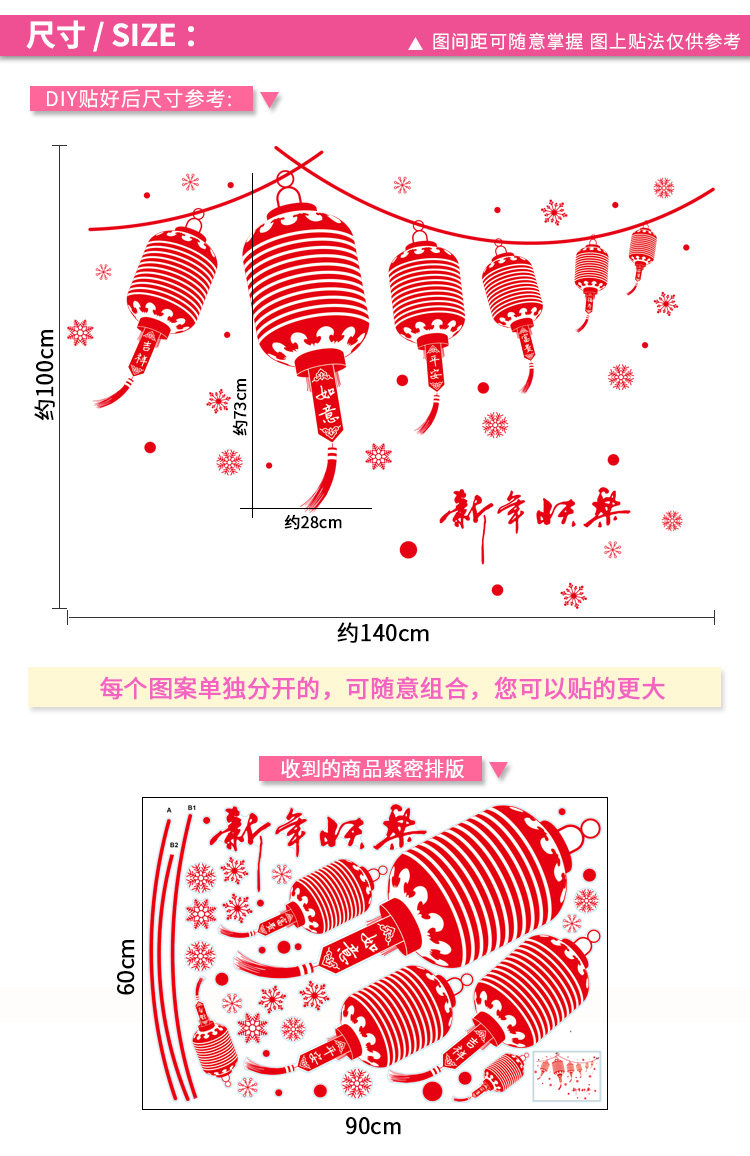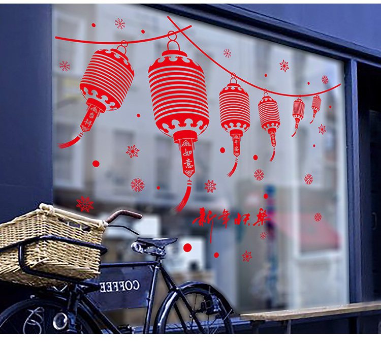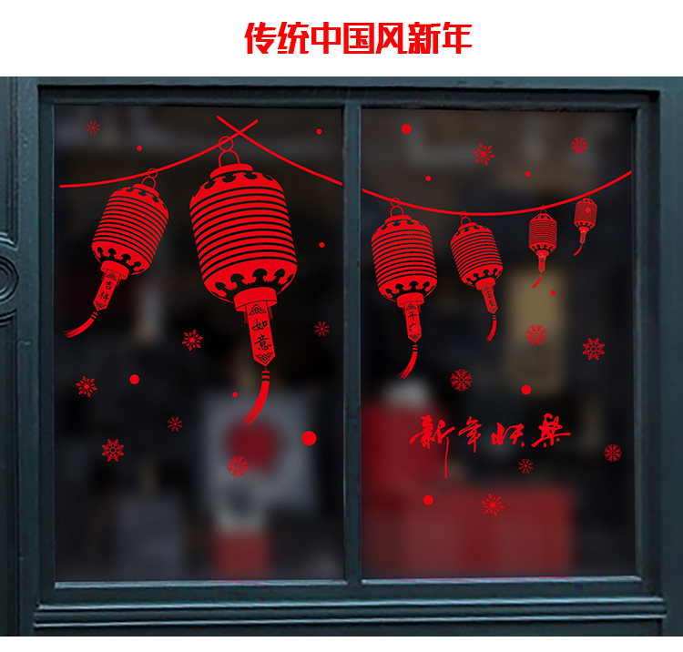新年装饰用品画年墙贴画春节灯笼过年新春店铺橱窗贴玻璃窗花贴纸