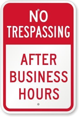 No Trespassing After Business Hours Metal Sign Aluminum Signs 12X18 Inches