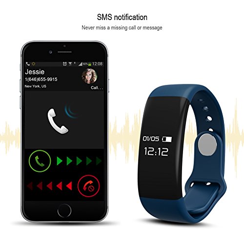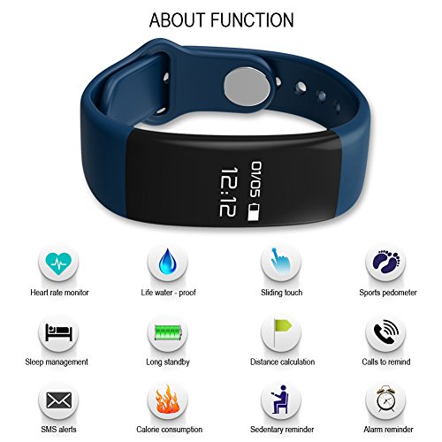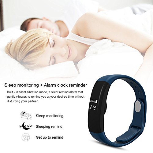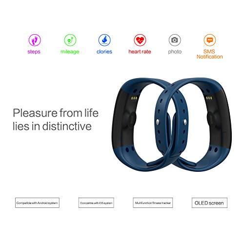 [New Design] 1,7cm OLED-Bildschirm, TPU Material Armband: 3-Achsen G-Sensor Beschleunigung.Unterstutzung Herzfrequenz Monitor, Zeit, Schrittzahler, Entfernung, Kalorienverbrauch Monitor, Wecker, finden Telefon, Sleep Monitor, Kamera Fernbedienung Capture. Vibration erinnern: Uhr Alarm, sitzende, Calling Name Display, SMS-synchrone Benachrichtigung Avis.
