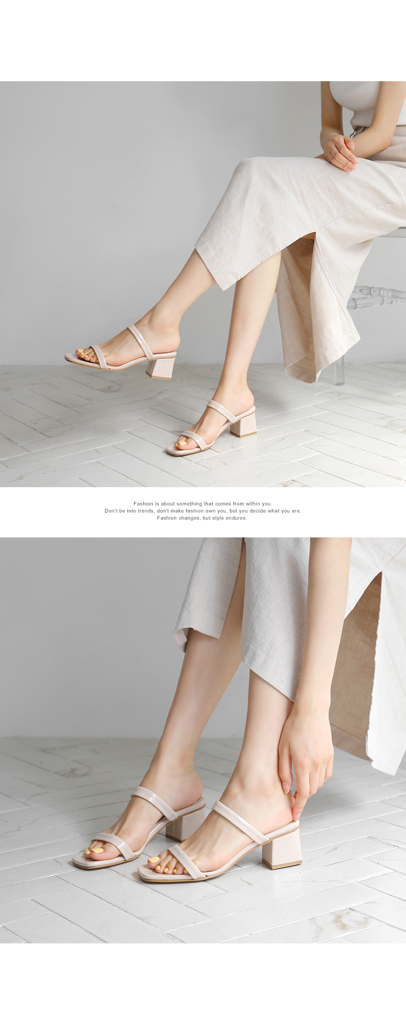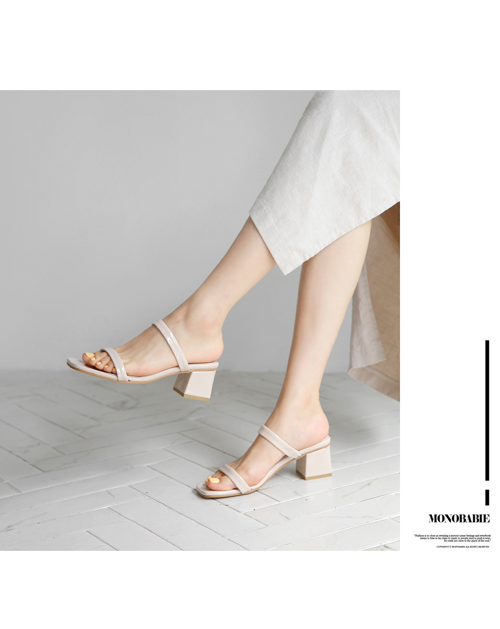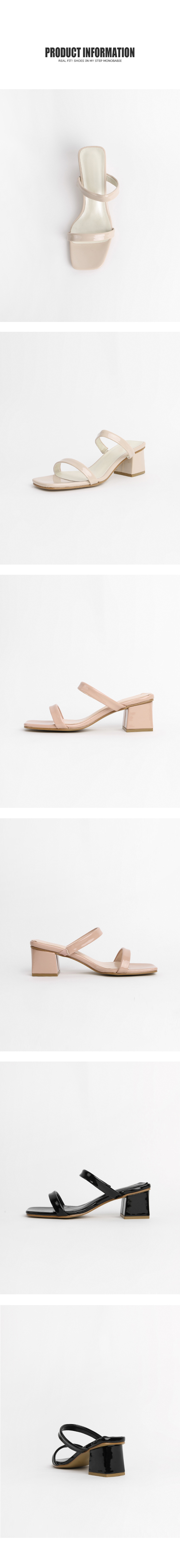 글로시한 에나멜 소재로 디자인 된 뮬입니다.
