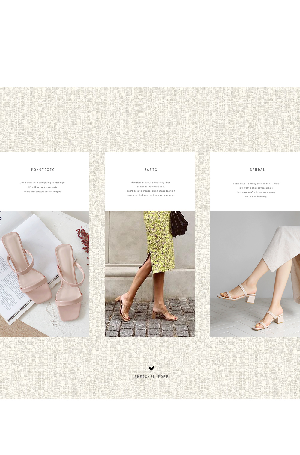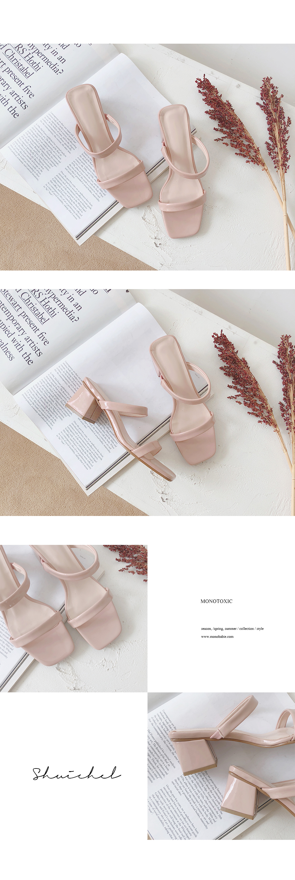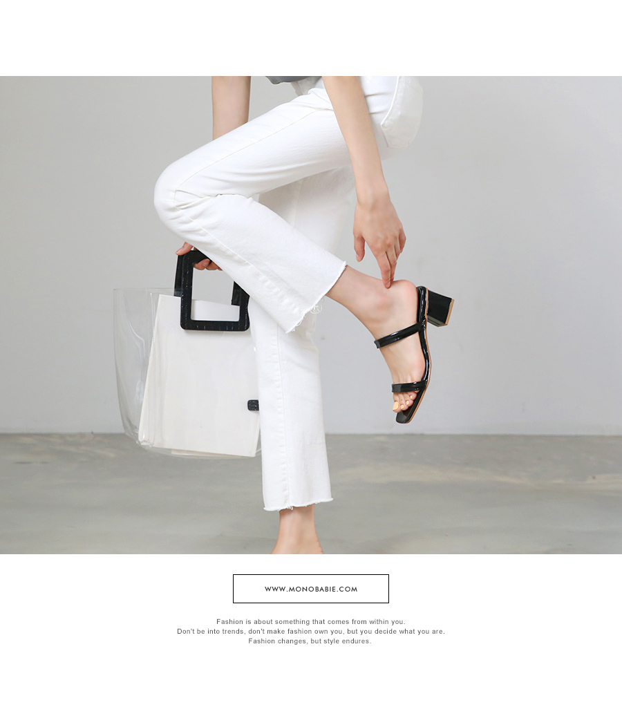 발등 스트랩엔 밴드조절이 가능하여 발목에 맞게 착화되고 청키한 스퀘어 타입의 굽이 안정감 있는 워킹을 보여줍니다.