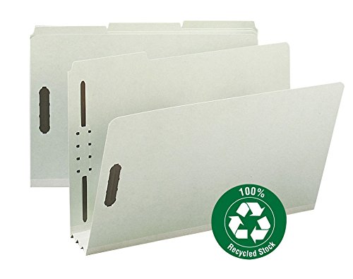 -. Title : Smead 100% Recycled Pressboard Fastener File Folder, 1/3-Cut Tab, 3" Expansion, Legal Size, Gray/Green, 25 per Box (20005)